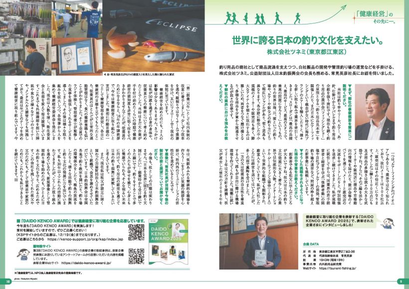 中小企業経営者向け情報誌『one hour(ワン・アワー)』(大同生命保険株式会社 全国で20万部発行)の2025年11月号「健康経営のその先に」のコーナーに、当社社長のインタビュー記事が掲載されました。当社は「健康企業宣言」を行い、取組みを継続しています。