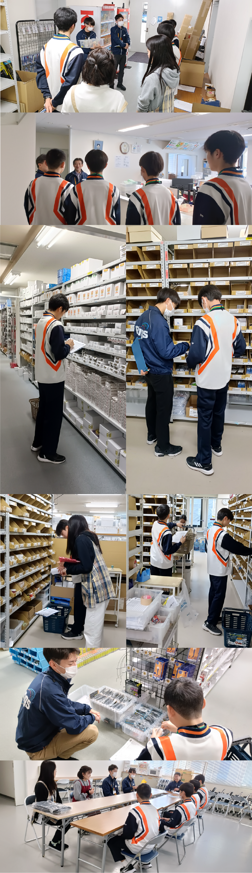 江東区立深川第二中学校の生徒2年生4名が訪れ、担当スタッフとともに倉庫内での商品ピッキングや、ハンディターミナルを使用した出荷前検品などの業務を体験しました。初日は緊張した様子でしたが、次第に職場の雰囲気に慣れ、倉庫にずらりと並ぶ釣具に興味を持って積極的に質問する姿が見られました。担当スタッフも、生徒の皆さんと一緒に生き生きと働く様子が印象的でした。生徒の皆様からは、「フレンドリーな会社だと思った」「分からない事はすぐに教えてくれた」などのお声をいただきました。