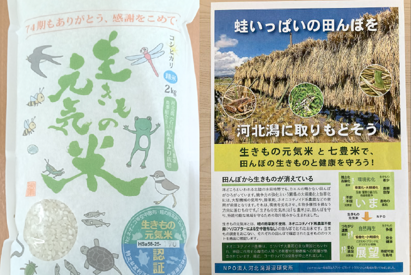 ※「生きもの 元気米」は生態系への影響が疑われているネオニコチノイド系農薬を一切使用していない石川県産の無農薬米です。